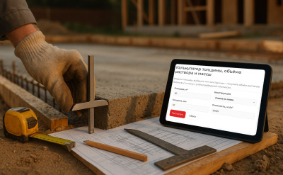 Введите площадь, выберите тип конструкции – получите объём раствора бетона в м³ и массу с учётом выбранной плотности.