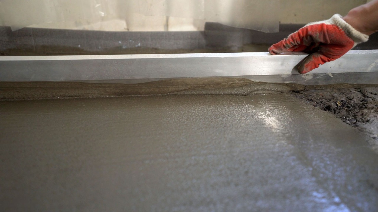 - Укладка – выставить маяки, соблюдать воду затворения; тянуть правилом, шлифовать по регламенту.